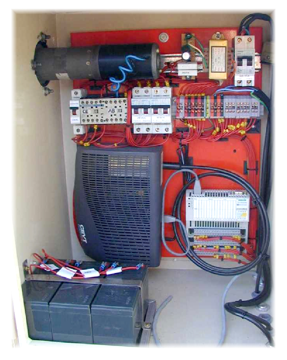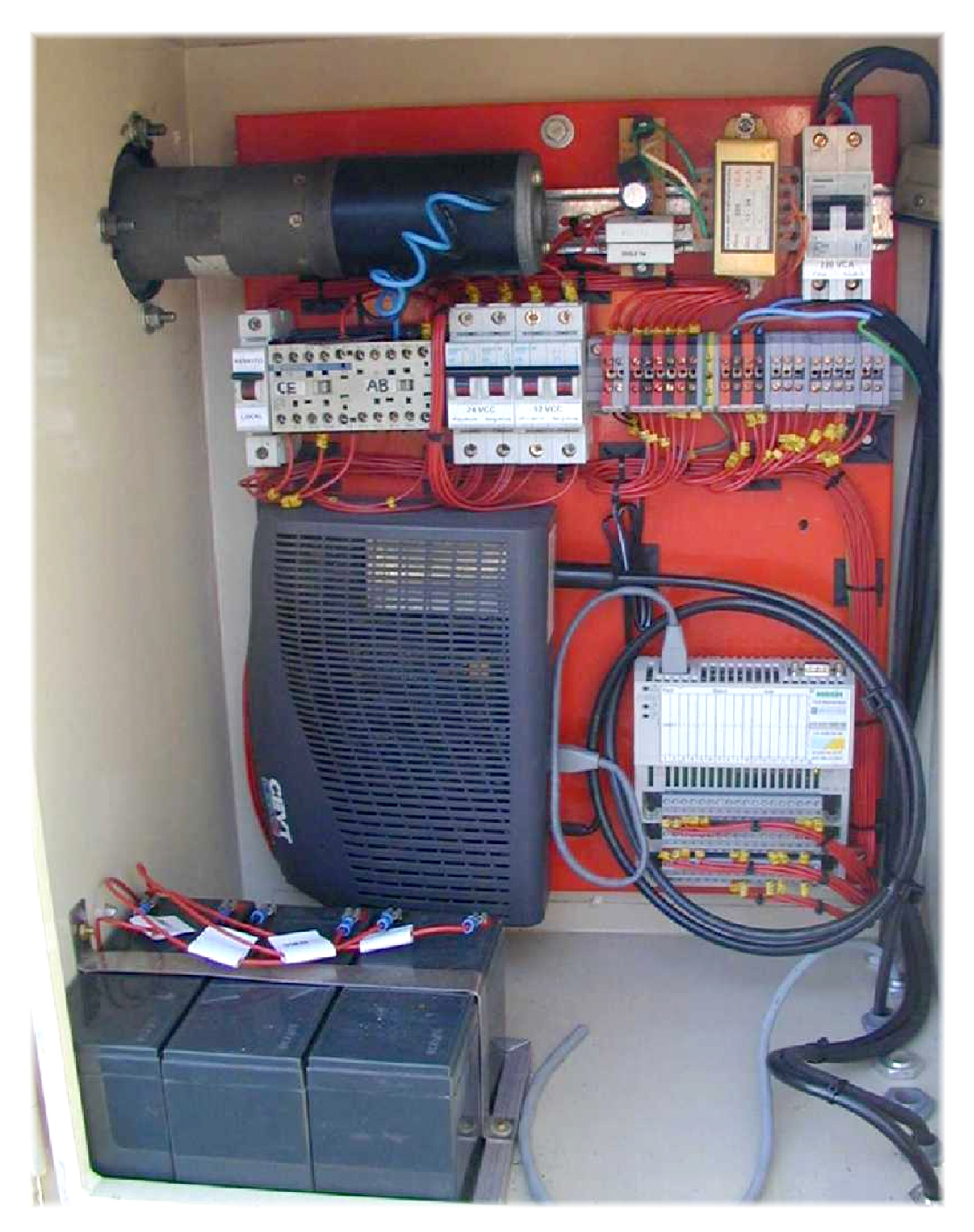 Consta de un motor reversible de corriente continua, una caja reductora, el pack de baterías de electrolito absorbido y el Centro de Control Seccionador CCS-1B compuesto por: Unidad Central de Proceso, Placa de Alimentación, Protecciones y Control de las Baterías, Placa de Potencia para la regulación Tiempo / Corriente del Motor (programable mediante el puerto RS-232) y comunicación DNP 3.0 o Modbus, que permite su incorporación a cualquier sistema SCADA disponible y normalizado con estos protocolos.